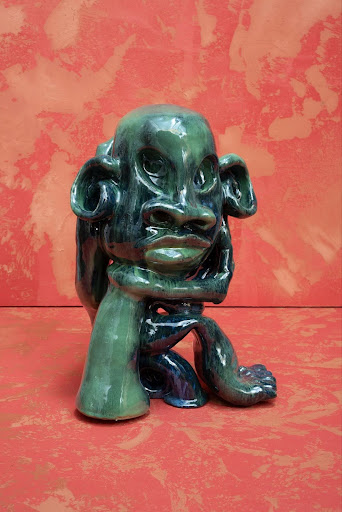 Rooted in precolonial and diasporic African traditions, Othello draws inspiration from spiritual practices, hermetic philosophy, and cultural artifacts—including nkisi power figures, Dogon ritual objects, and Egyptian pyramids. His anthropomorphic sculptures, with their richly glazed surfaces, suggest a quiet vitality—the forms appear to lean, rest, or embrace, as if shaped by the weight of memory and emotion.