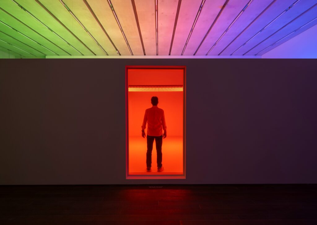 While Deconditioning Labyrinth was never fully realized, different configurations of Chromosaturation have been exhibited all over the world since. This version at PAMM features rooms entirely bathed in light-based colors, known as additive colors—red, blue, and green. Unlike the traditional primary colors we learn in school, these additive primaries create white when combined. This additive system is often used for lights and screens, mimicking how the receptors in our eyes perceive color.