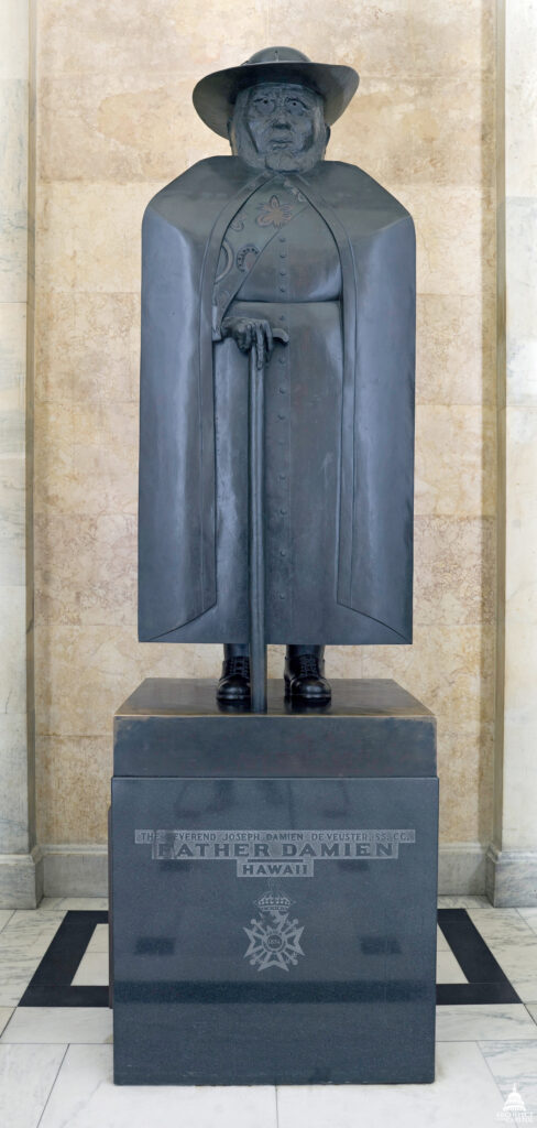 She continued to work in Latin America and in the Pacific, shifting to bronze sculpture and producing more work in the 1970s than ever before. Marisol is one of the few woman artists to have an artwork featured in the United States Capitol as part of the National Statuary Hall Collection. Seen below is her 1969 sculpture of Father Damien, a Catholic priest who lived and work in the state of Hawai’i, is representative of the geographic and material changes in Marisol’s life and work.