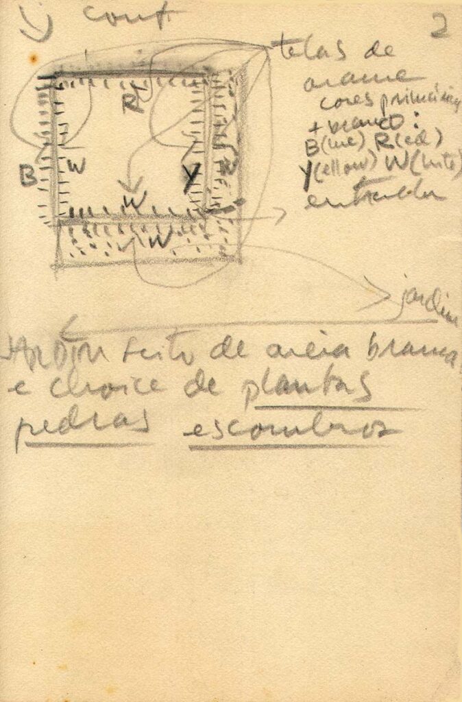This experience would lead to the artist creating sketches of a piece inspired by the event. In the sketches, Oiticica details the materials he intended to use as well as their color and their general shape and construction. However, before he could physically create the piece, less than two years later, the artist passed away.