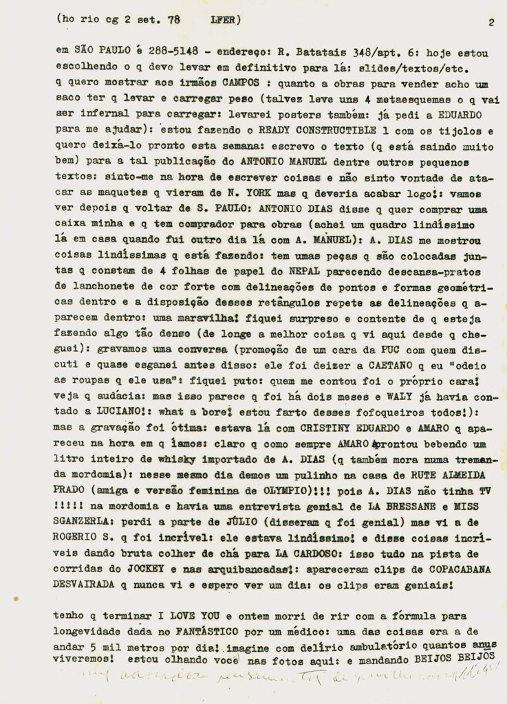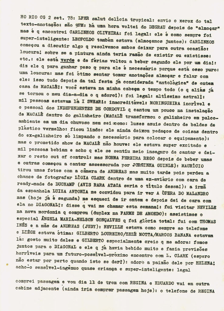 In 1978, Brazilian artist Helio Oiticica attended a party at the house of his friend and musician, Jards Macale. Oiticica would write about the party in his notes: