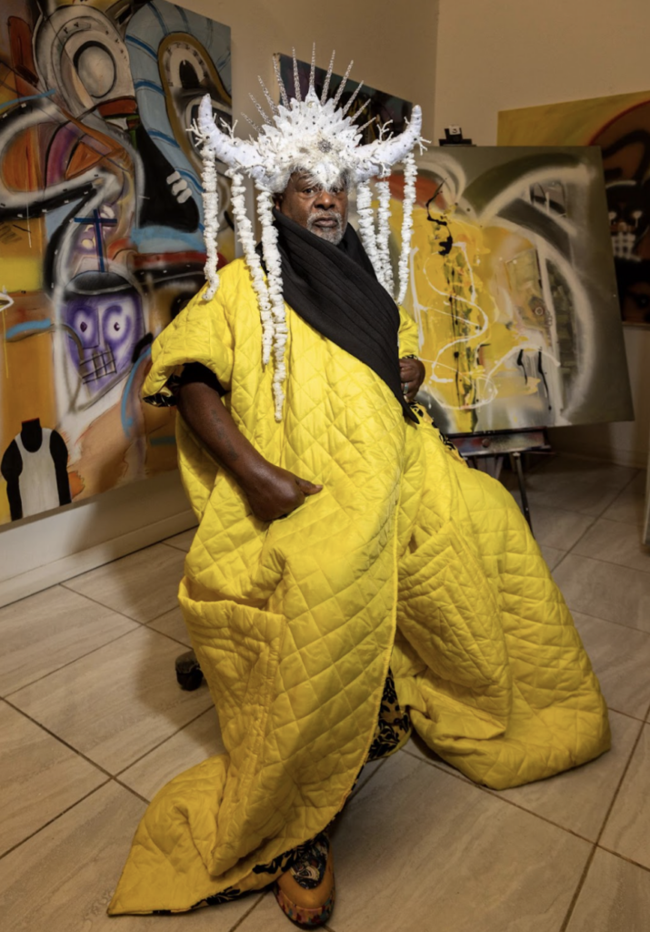 George Clinton (b. 1941, Kannapolis, North Carolina) is a musician, singer, bandleader, and record producer. His Parliament-Funkadelic collective developed an influential and eclectic form of funk music during the 1970s that drew on science fiction, futuristic fashion, psychedelia, and surreal humor. He has had solo exhibitions at Jeffrey Deitch, New York; SPILLMAN | BLACKWELL Fine Art, New Orleans; George Washington Carver Museum & Cultural Center, Austin; and The National Museum of African American Music, Nashville. His Mothership is on permanent display at the Smithsonian National Museum of African American History and Culture and he is currently featured prominently throughout the Afrofuturism exhibition on view through August 18, 2024. He will have a solo exhibition at Savannah College of Art and Design Museum of Art next September. In September 2020, during the Covid-19 pandemic, Clinton engaged in a conversation online with PAMM’s director, Franklin Sirmans. Clinton currently lives and works in Tallahassee, Florida.