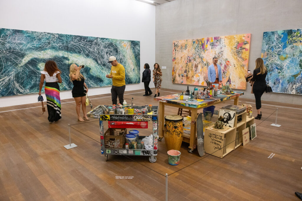 Throughout the evening, guests also had the opportunity to view José Parlá: Homecoming. An elaborate, two-part exhibition by the Miami-native artist, Homecoming features never-before-seen works and a site-specific mural, and is a radical departure from the traditional use of space in a museum. Before the show’s opening, visitors had the unique opportunity to observe Parlá’s dance-like technique in real time, painting a mural in situ at the museum. The second portion sees the museum gallery transformed and converted into Parlá’s studio: a room full of paint-covered tables, a lively vinyl Cuban-inspired records collection, and decades of Parlá’s archival memorabilia. Homecoming is on view through July 6, 2025.
