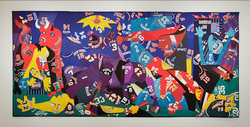 Hank Willis Thomas, Guernica, 2016. Mixed media, including sports jerseys. 131 x 281 inches. Private collection, courtesy the artist and Jack Shainman Gallery, New York.