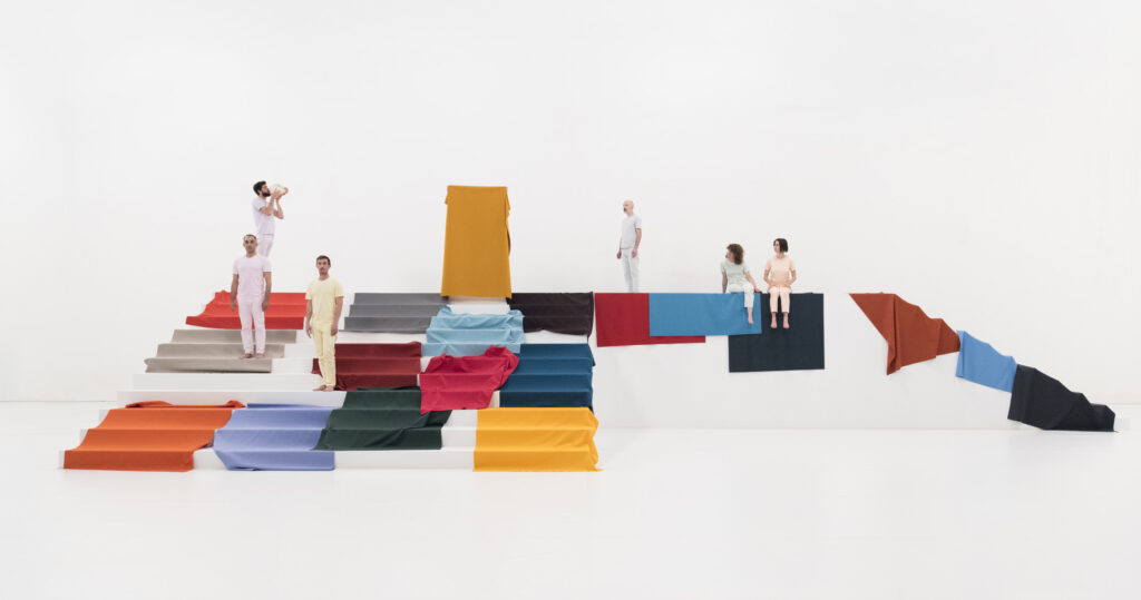 Otro elemento importante en esta obra es la expresión del interés de von Brandenburg por las teorías de color del siglo XIX y el XX. Johann Wolfgang Goethe refutaba la idea de Isaac Newton de que el color era puramente un estado físico, argumentando que el ojo humano establece múltiples asociaciones cuando distingue el color, incluidas las respuestas emocionales. von Brandenburg con frecuencia utiliza en su obra los colores de la rueda cromática de Goethe, con particular atención a su aspecto emocional y fenomenológico. También hace referencia a la prueba de los colores de Max Lüscher, la cual describe la personalidad de un individuo mediante sus preferencias de color. A la artista le interesan los aspectos subjetivos del color; los textiles en colores con los que danzan los bailarines en el video ejemplifican las luchas personales con el colectivo. Su enfoque hacia los materiales mismos se puede ver como una referencia directa a las cortinas y el vestuario de teatro. Los visitantes entran en la galería por un área cubierta con tela como si cruzaran por detrás de una cortina: el umbral entre la realidad y la imaginación. Asimismo, a von Brandenburg le interesa investigar la tela como un trabajo de mujeres en relación con los ideales modernos, que han establecido una dualidad clara entre las artesanías y las bellas artes. Los textiles, que a veces se consideran más cercanos a estas primeras, tienen una cualidad orgánica y artesanal esencial para esta obra y von Brandenburg los utiliza para validar esta forma estética y su multiplicidad. La tela también tiene un vínculo con el teatro (como vestuario) y el individuo, en especial cuando se considera la manera como la ropa se utiliza para expresar individualismo, moda e identidad de grupo en la cultura occidental.