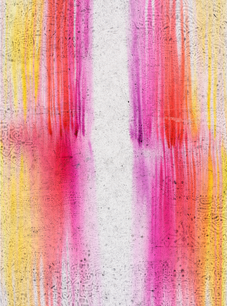 Las pinturas densas y rítmicas de Tomm El-Saieh se inspiran en una variedad de fuentes, incluyendo la historia y el discurso sobre la abstracción tanto estadounidense como internacional, así como las tradiciones del vudú haitiano, como la inducción al trance y la música percusiva. El-Saieh nació en Puerto Príncipe, Haití, en 1984 y es de ascendencia haitiana, palestina e israelí. Creció en Miami, Florida, manteniendo al mismo tiempo estrechos vínculos personales y artísticos con su país natal.
